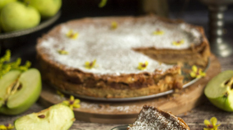 15). Piecz przez ok 20 minut, uważając aby góra za mocno się nie przypiekła (plastry jabłka mogą się przypalić), pod koniec podkręć temperaturę na 200 °C i ustaw grzanie tylko na sam dół.